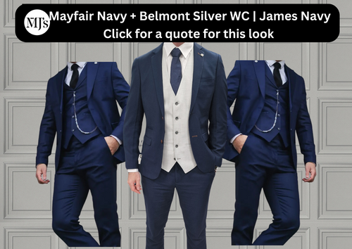 Mayfair Navy Jacket & Trouser with Belmont Silver waistcoat + James Navy Wedding Quotation