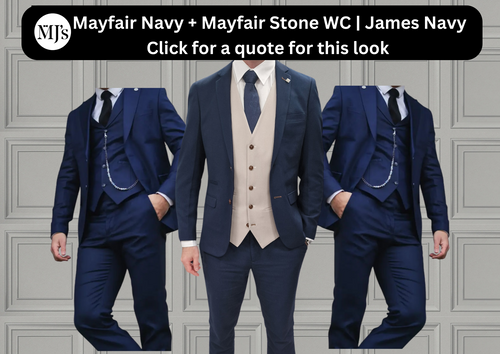 Mayfair Navy Jacket & Trouser with Mayfair Stone waistcoat + James Navy Wedding Quotation