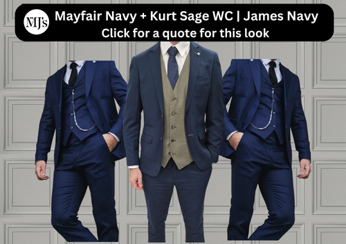 Mayfair Navy Jacket & Trouser with Kurt Sage waistcoat + James Navy Wedding Quotation