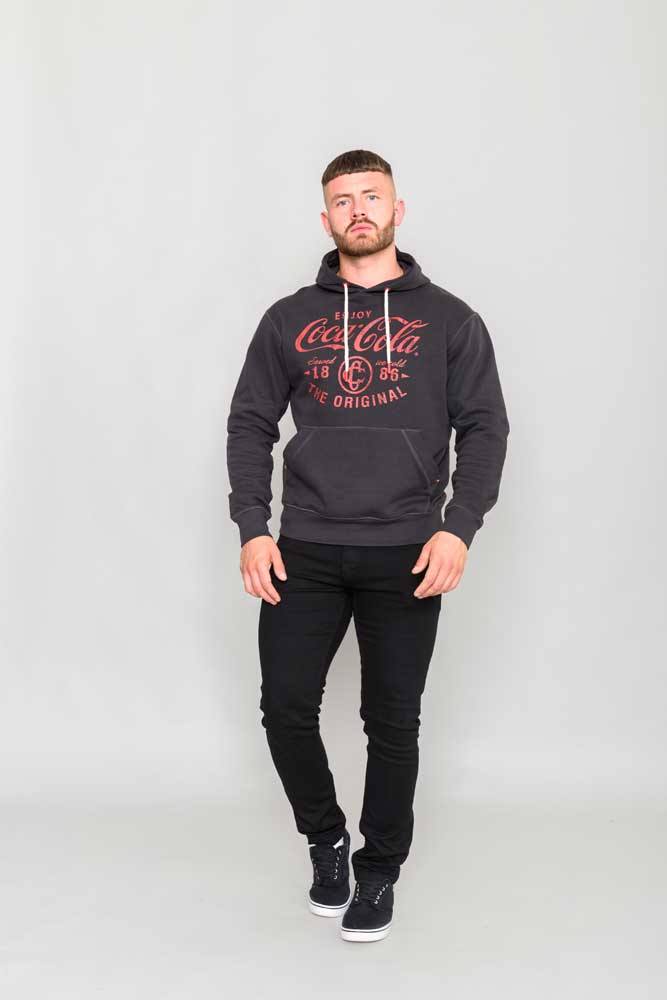 Celebrate timeless style with the Coca-Cola Heritage Hoodie, a bold nod to one of the world’s most iconic brands. Crafted in a rich charcoal tone, this hoodie features a striking red graphic that reads “ENJOY Coca-Cola,” paired with “ESTD 1886” and “THE ORIGINAL” to honor the brand’s legacy. The classic pullover design includes a spacious front pocket and crisp white drawstrings for contrast, blending comfort with retro flair.
