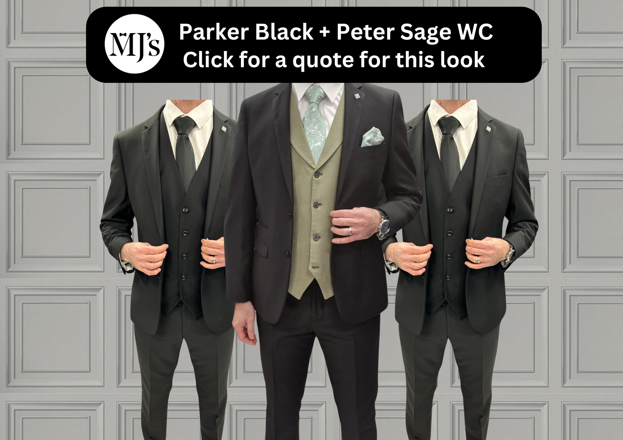 Parker Black 3 Piece Suit - MJ's Menswear Derry