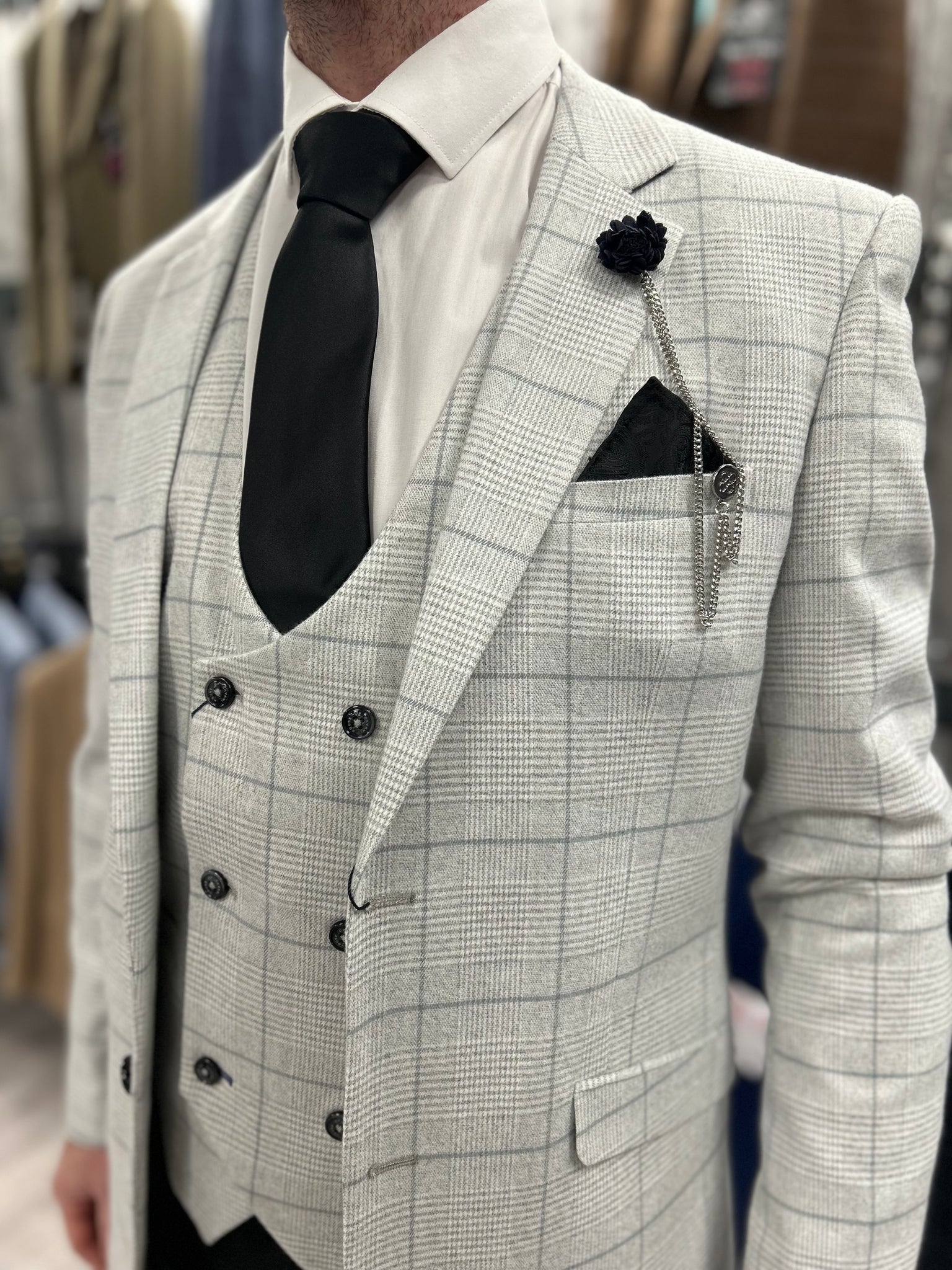 🎩 Radika Light Grey Checked Suit: Crafted to perfection, the Radika Light Grey Checked Suit is the epitome of elegance and refinement. Its sleek design and impeccable tailoring exude confidence, making it the ideal choice for those aiming to enhance their status. Tailored for a modern fit, this suit ensures a sharp and distinguished silhouette, commanding attention and respect in any setting.
